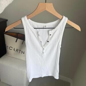 bp tank, white ribbed tank, button front top, scoop neck tank, fitted tank top, minimalist wardrobe, capsule closet, summer basic, everyday essential, stretch cotton top, layering piece, womens tank xs, neutral basics, closet staple