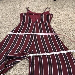 BP Wide Leg Cropped Jumpsuit Size XXS Burgundy Red Striped Cut Out Back