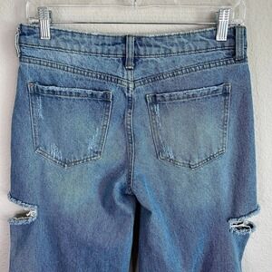 BP Wide Leg Jeans Women's 27 Side Cut Out Mid Rise Medium Wash Cotton Trashed