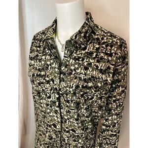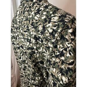BP + WildFang Etched Reptile Utility Jumpsuit. Relaxed fit, front and back pockets, elastic back. Long sleeve with hidden button front, patch pockets on chest and seat, slip side pockets. Oversized.