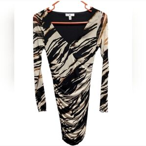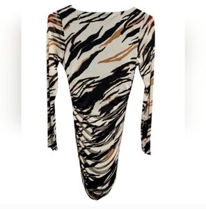 BP Women Ruched Animal Print Mesh Long Sleeve Dress in pre-owned excellent conditions, see pictures for measurements.