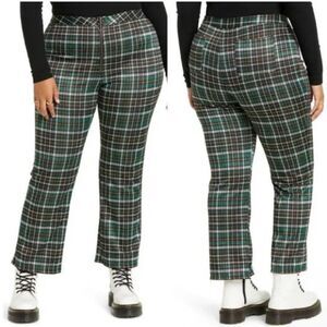 BP Women's 1X NWOT Pants Green Julia Plaid Flare O-Ring Zip High Rise