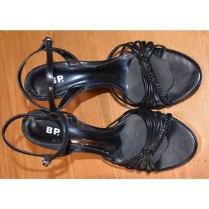 BP, Women's Black Open Toe Heel, Size 7, VGU, Jeri, Leather