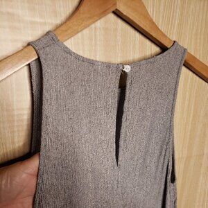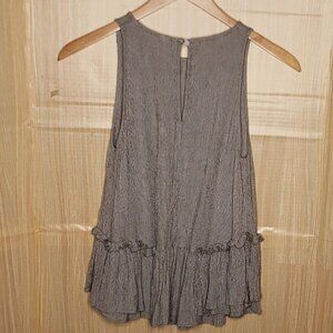 BP women’s black white micro sripe textured flowy sleeveless ruffle bottom top XS. Gently used condition. Measurements are: 24” from shoulder to hem, and 16” from armpit to armpit.