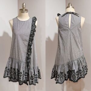 BP. Women's Black White Striped Embroidered Floral Ruffle Mini Dress Size XS
