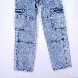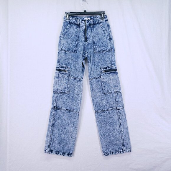 BP. Women's Blue Acid Wash High Waisted Pockets Cargo Straight Leg Pants Size 25