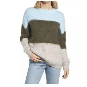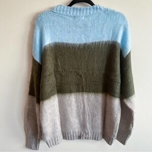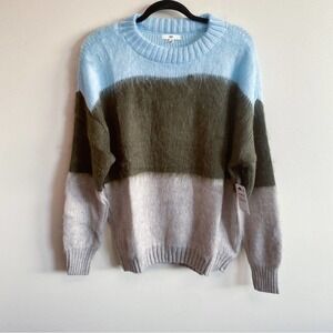 BP. Womens Blue Trixie Multi Stripe Oversize Brushed Pullover Sweater