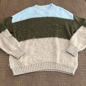 fuzzy sweater, colorblock pullover, crewneck sweater, soft knit top, cozy lounge sweater, BP Nordstrom sweater, lightweight warm top, casual chic pullover, layering knitwear, pastel and earthy tones, minimalist sweater, trendy streetwear, Y2K style, normcore, casual core, comfy core