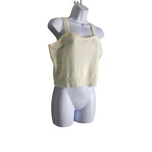 BP Womens Cable Tank Top Ivory Fitted Ribbed Hem Scoop Neck Sleeveless Sz Large