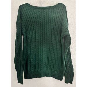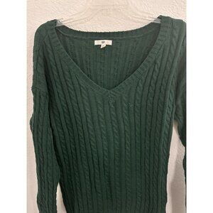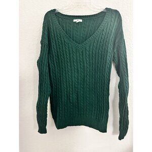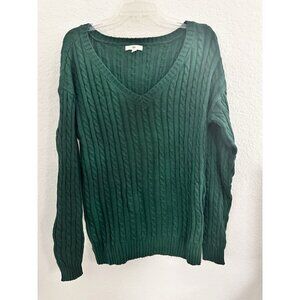 BP Womens Cable-Knit V-neck Sweater Size M Emerald Green Cotton Blend Cottage