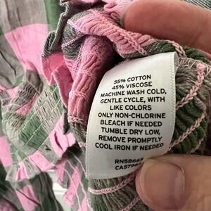 BP. Womens Crop Top Pink Buffalo Plaid Long Sleeve Puff Scoop Neck Smocked SZ S