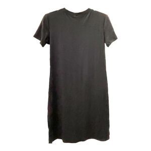 BP Women's Dress Shift Pullover Round Neck Side Slit Rib-Knit Black Size M NEW