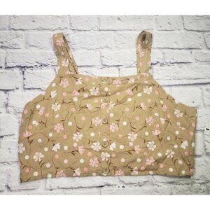 BP Womens Front Button Linen Tan Beige Pink Sophia Floral Crop Top Size 2X.