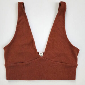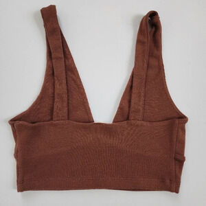 BP. Women's Moch Brown Deep V-Neck Textured Wireless Bando Bralette Bra, sz SM
