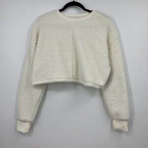BP Women's Sherpa Pile Fleece Cropped Sweatshirt in Ivory Size S NWT