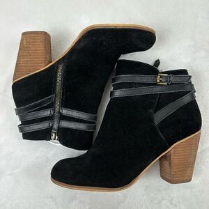 BP Women's Size 9.5 Suede Leather Ankle Booties Stacked Heel Strap Buckle Ankle