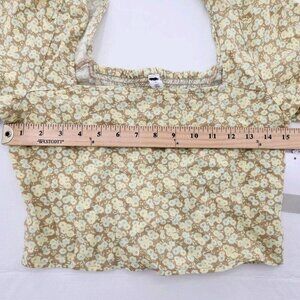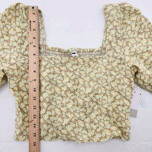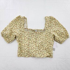 BP. Womens Size Small Linen Blend Puff Sleeve Smocked Back Crop Top