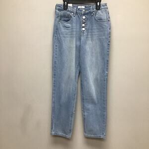 BP Womens Straight Leg Jeans Blue Light Vintage Wash Button Fly High Rise 25 New