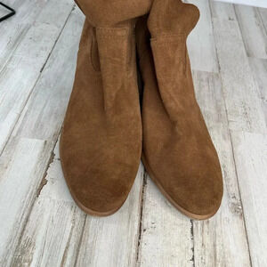 BP Women's Tan Suede Foldover Block Heel Ankle Booties Size 10M