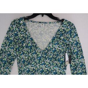 BP. Women's Sz S Green Moss Hannah Kate Floral V-Neck L/S Knit Pullover Dress