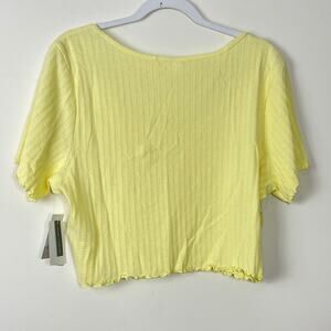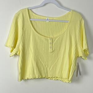 BP. Yellow Lemonade Pointelle Rib Crop Henley NWT Plus Size 2X