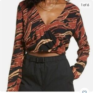 BP burnout tiger stripe wrap long sleeve brown crop top S NWT