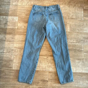 These BP light blue mom jeans have a distressed look with holes, a 24” waist and 26" inseam.