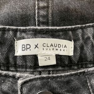 BP x Claudia Sulewski Collab Jean Skirt Black Distressed Raw Hem Mini Denim 24
