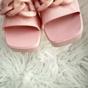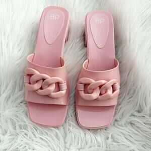 Amazing pair of Lollie slide on sandals from BP, an exclusive NORDSTROM brand! Size 11, worn once indoors. Beautiful bubble gum/barbie pink. Heeled platform, lug sole. Chain-looking detail on top.