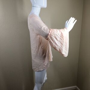 Gathered bell cuffs add breezy movement to this effortlessly chic V-neck top. Small yellow marks (should wash out)- pictured above. Light pink/cream color. New without tags.