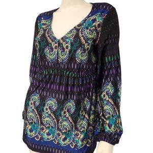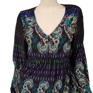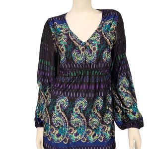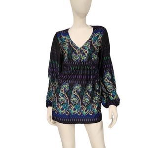 BPC cinched waist boho Tunic top. size Med Pit 18 length 30