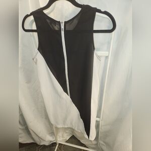 BP Collection Black and White Sleeveless tunic with back exposed zipper and rounded hemline with split sides.