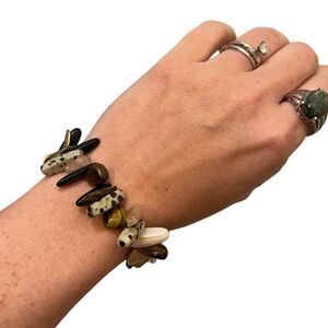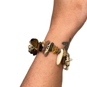 I’m not very knowledgeable on crystals, but this does appear to have tigers eye, rose quartz & Dalmatian jasper.