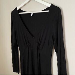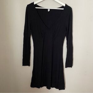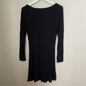 BP Dress Long Sleeve V-Neck Mini Black Solid Casual Neutral
