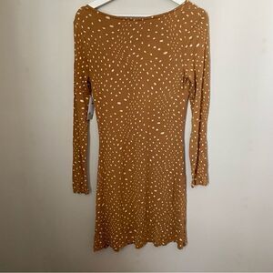 BP Dress Long Sleeve Print Knit Tan Warpy Dot Mini Casual White Neutral