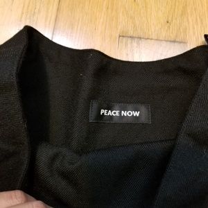 Features a zipper accent on the front and asymmetrical skirt with batwing hem.