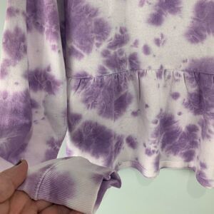 New with tags. Long sleeve babydoll/peplum fit sweatshirt. Purple tie dye pattern. Pit to pit= 20”, shoulder to hem= 23”.