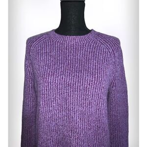 Purple ribbed knit oversized sweater. Long sleeve. Crew neck. 60% polyester/29% polyester/8% nylon/3% spandex. Size: XS. NWT