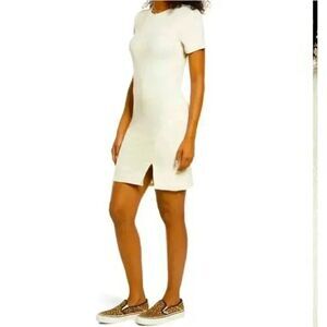 BP Women's Ivory Rayon/Spandex Ribbed Knit Short Sleeve Dress EUC sz S