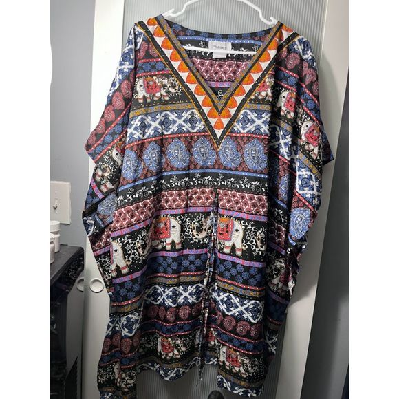 This bohemian-themed cover-up is perfect for any beach day. The colorful design features the brand Phases and is a plus size, making it suitable for women of all sizes. The versatile piece can be used as a swimwear cover-up or worn as a stylish addition to any outfit. Made for women, this cover-up is sure to turn heads with its unique design.