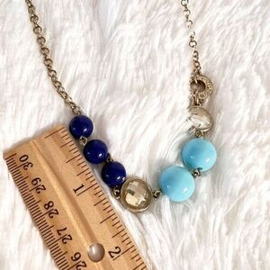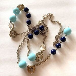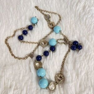 BR Banana Republic Gold Tone Chain Blue Beaded Long Necklace 38 Inch.