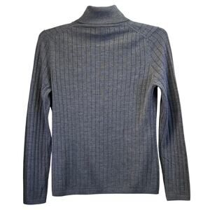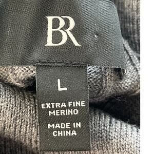 BR By Gap Womens L Gray RibStyle Top Merino Extra Fine Wool T Neck Long Sleeves
