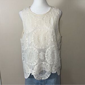 BR L Luxury Elegant Ivory Crochet Lace Back Button Keyhole Sleeveless Shell