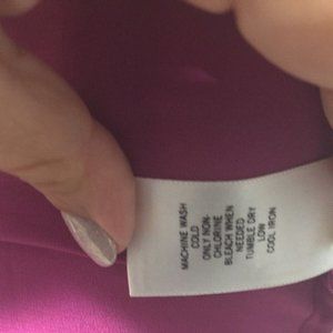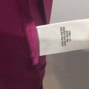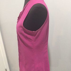 Really pretty VIBRANT PINK blouse. This top has a ruffled pattern going down the front of the shirt and pretty covered buttons. The shirt is very lightweight and great for the summer. When having to wear this with a professional suit, it easily adds a little something exciting! You could also easily dress this down with a pair of cut offs and look great! Either way, this is a rally great top! Size small in great condition!