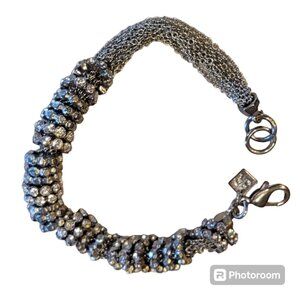 BR Silver Tone Ringed Rhinestone Bracelet with Lobster Clasp