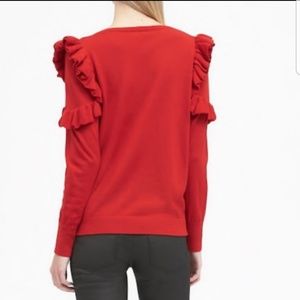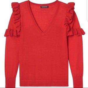 BR V-Neck Ruffled Shoulder Merino Sweater