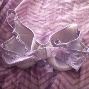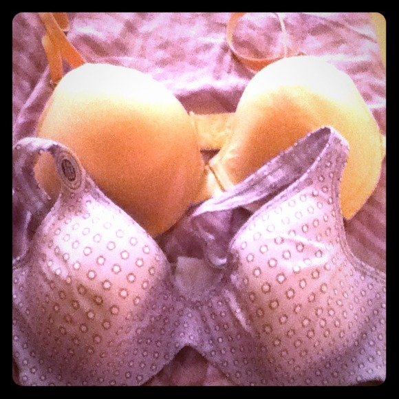 Two brand new bras, never worn. Tan one is more padded then the blue. Blue bra has small purple flowers.