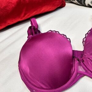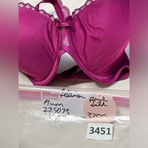 BRA FELINA 32DD Plum Plunge Underwire Silky Lace Detail Light Pad 225073 3451 PS