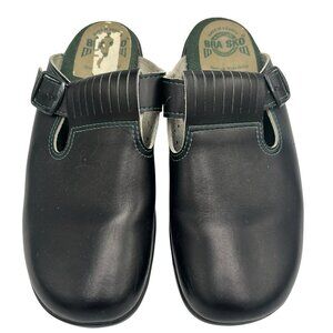 Vintage Bra Sko BRASKO Black Leather Slip On Clogs