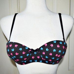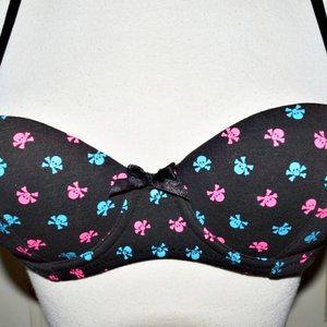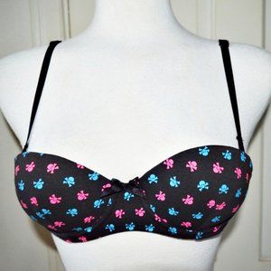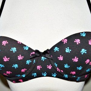 BRA SKULLS PATTERN BLACK BODY BLUE & PINK SKULLS REMOVABLE STRAPS 32A